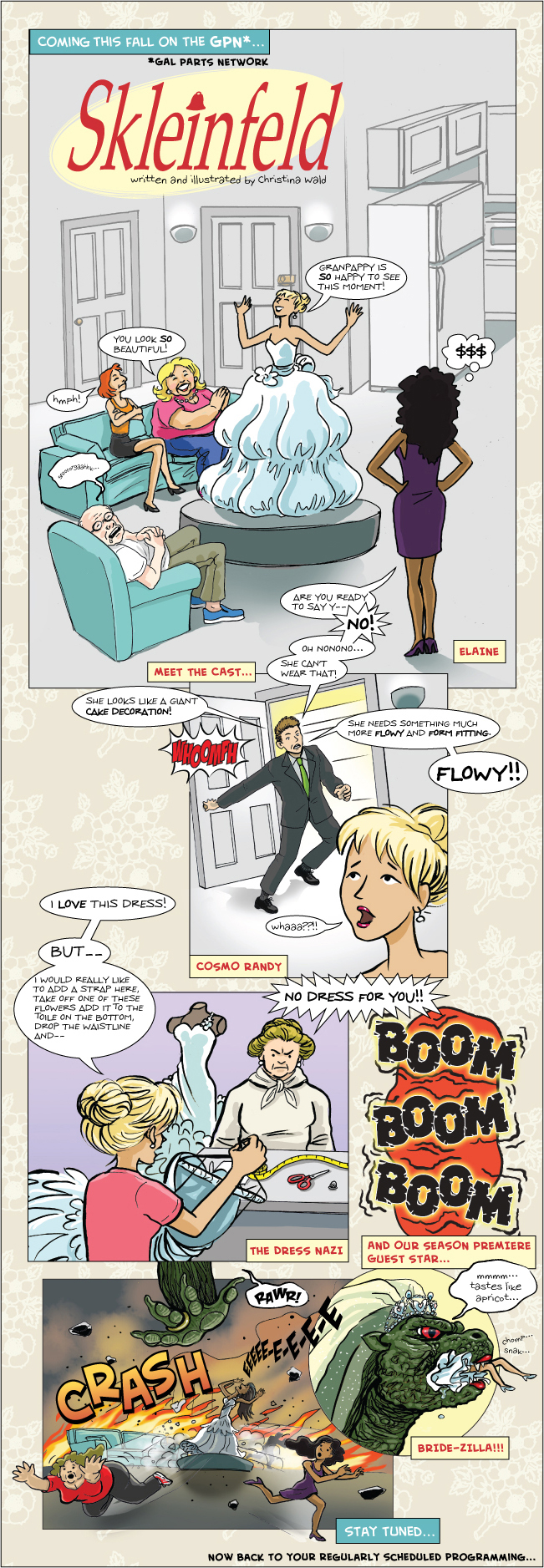 I realized the name was like Seinfeld, one of my favorite shows ever and this comic concept was born. I am almost done with the next Fairy Godfather installment, but this concept kept haunting me and I had to draw it. One of the great things about a webcomic like this is its whole purpose is I can do whatever I want. (That also applies to the format. I am not restrained by page size so it I want to make a super-tall comic, I will.)